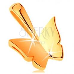 14K sárga arany medál egy kis lepke alakjában, fényes és sima felülettel. A medál hátoldala üreges. A láncra kerülő szem szorosan kapcsolódik a lepkéhez és ovális formája van. Medál méretei: 7 x 6 mmMedál súlya: 0,2 gA láncra kerülő szem szélessége: 2 mmFémjelzéssel ellátott. Medál lánc nélkül.
