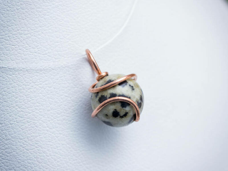 Szolidan elegáns ásvány medál azoknak a hölgyeknek, akik a visszafogott elegancia hívei a munkahelyükön, és a mindennapokban is. Alkalmi öltözékéhez is tökéletes. Örök klasszikus ajándék, melyet bátran adhatunk ajándékba olyanoknak, akikről tudjuk, kedvelik az ásványokat. A 1 0 mm-es valódi jáspis ásvány gyöngyöt dekoratívan öleli körül a réz drót ennél a med