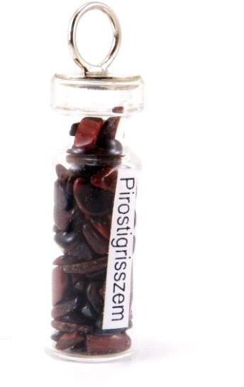 Ezoterikus üveg medál, valódi ásványkövekkel. Használható medálnak, vagy talizmánnak. 3x1cm-es üvegben, természetes macskaszem (piros tigrisszem ) ásványok. 7mm-es karika bújtatóval, teljes magasság: 4cm VIGYÁZAT! TÖRÉKENY! A kép illusztráció, a medálból több darab is vásárolható. A tigrisszem gyógyhatása