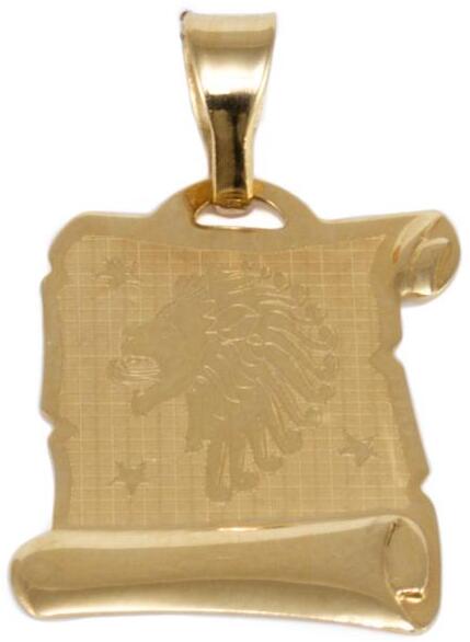 Oroszlán horoszkópot ábrázoló pergamenes, mattítással díszített arany medál.