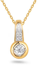 Ez a sárgaarany medál klasszikus megjelenést ötvöz a kerek foglalatba foglalt, briliáns csiszolású gyémántok finom részleteivel, valamint további gyémántokkal a lógó hurokban, ami fényűző érzést kölcsönöz neki. Az ékszer a részletekre összpontosít - a sárga aranyba foglalt briliáns csiszolású gyémántok gyönyörű kontrasztot alkotnak, amely kiemeli tisztaságukat