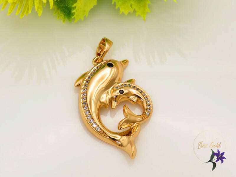 Goldfilled páros delfin medál gazdagon díszített cirkóna kövekkel Szin: 18K Méret: 35x20mm A forgalmazott divatékszerek alapanyaga nikkel és ólommentes ezért többnyire nem okoznak allergiás tüneteket, nyugodtan hordhatják fémérzékeny emberek is. Általában nem színezik a bőrt és más divatékszerekhez képest nagyságrendekkel jobb kopásállósággal rendelkeznek. A fehér (