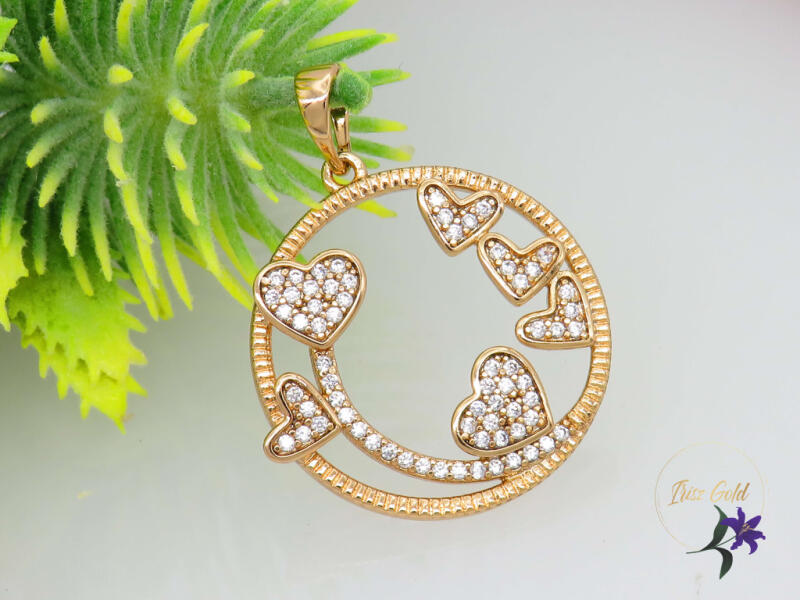 Gold Filled köralakú medál szívecskékkel Szin: 18K Méret:30x22mm A forgalmazott divatékszerek alapanyaga nikkel és ólommentes ezért többnyire nem okoznak allergiás tüneteket, nyugodtan hordhatják fémérzékeny emberek is. Általában nem színezik a bőrt és más divatékszerekhez képest nagyságrendekkel jobb kopásállósággal rendelkeznek. A fehér (ezüst) színű ékszerek u