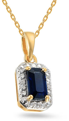 Az aranyból készült medál varázslatával elvarázsol, mely kiemeli a zafírt. A medál téglalap alakú, és briliánsok veszik körül. A gyémántok össztömege 0,010 ct, H színnel és SI1 átlátszósággal. A zafír súlya 0,410 ct. A gyémántok iZlato® eredetiségi tanúsítvánnyal rendelkeznek.
