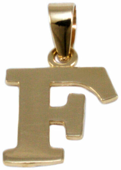 Egyszerű kialakítású, fényes, minta nélküli arany "F" betű medál.