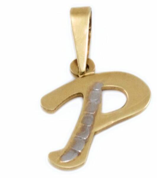 Klasszikus és kedvelt fazonú, ródiummal díszített, kétszínű arany "P" betű medál.