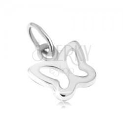 Arany medál 585, melyet lepkekörvonal alkot fehér aranyból, miközben a felszíne magasfényű és sima. A medál méretei:9 x 7 mm A medál súlya: 0,2 gA láncon lévő szem szélessége: 2 mmFémjelzéssel ellátott. Medál lánc nélkül.