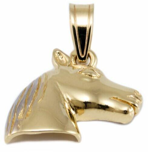 Masszív kialakítású, ródiummal díszített lófejet ábrázoló arany medál.
