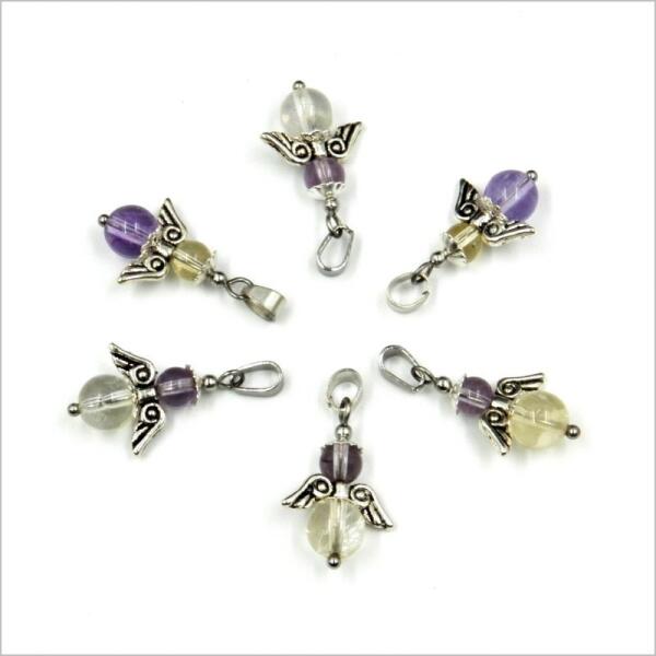 Az ametrin összenőtt kristály, melyet az ametiszt és citrin keveréke alkot, így minden kristálynak más színe van, az áttetsző sárga, színtelen, és lila változatában. A kristályok kicsik ahhoz, hogy egy kristályban benne legyen a sárga és lila szín. Az angyal medálkákat úgy állítottam össze, hogy egy medálban két különböző színű ametrin gyöngy legyen. Az angyal s