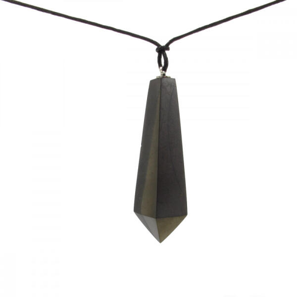 Nagy méretű, négy lapra csiszoltcsúcsos obeliszk inga shungit medál, pamut zsinóros nyakláncon. Figyelem, a sungit magas szén tartalmánál fogva a ruhát befeketíti! A Shungit egy egyedülálló széntartalmú, szerves eredetű ásványi anyag, mely nyers formában csak a Kareliai Köztársaságban, az Orosz Föderációban található, ahol ennek a csodálatos ásvány egyetlen bányáj