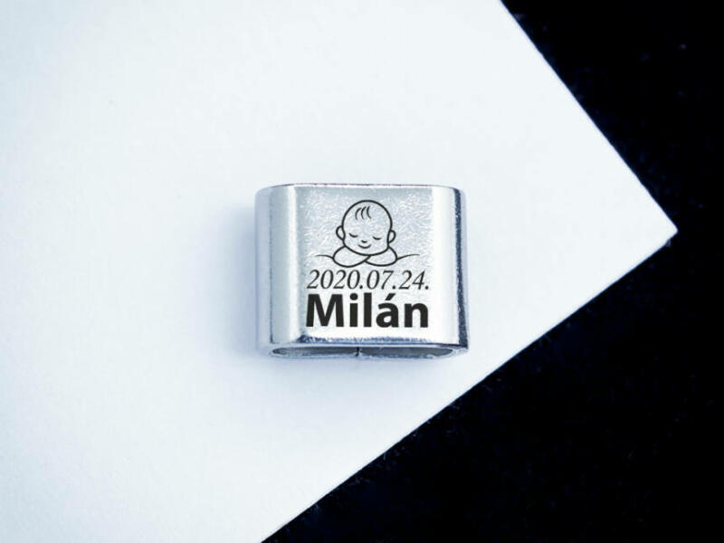 Emlékőrző ékszerben a Te varázslatod! A medálra fiú gyermeked keresztnevét , és születési dátumát gravírozzuk! (Lézer gravírozott szögletes alakú nemesacél csúszó medál - 12×10 mm méretű) A medál egy nyakláncra felhúzva is hordható, de alapvetően a MoMents karkötő kollekció kiegészítőjeként elérhető. Az ár tartalmazza a gravírozás költségét. A gravíroz
