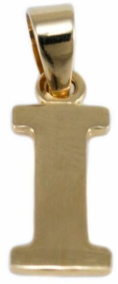 Egyszerű kialakítású, fényes, minta nélküli arany "I" betű medál.
