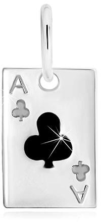 925 ezüst medál, kártyalap motívummal. Első részén gravírozás található amely fekete fénymázzal van kitöltve. A medál hátsó része sima, fényes. A láncra kerülő szem ovális. Medál méretei: 7 x 11 mmLáncra kerülő szem szélessége: 2,5 mmSúly: 0,56 gFémjelzéssel ellátott. Medál lánc nélkül.