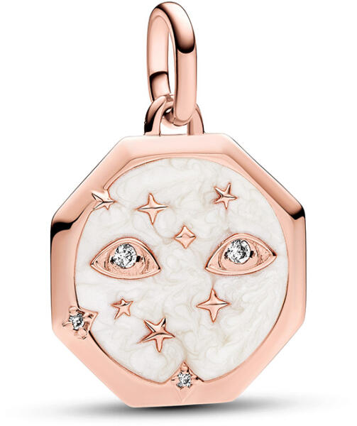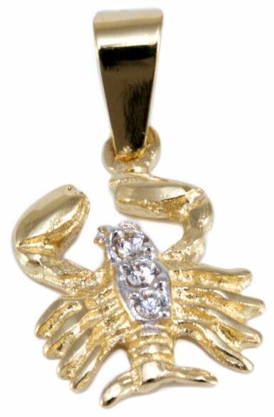 Modern stílusú, kedvelt fazonú, könnyű súlyú, de mutatós, üreges, cirkónia kővel ékített, horoszkópos arany medál.