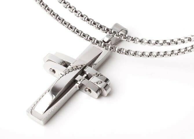 Orvosi acél kereszt medál 42 mm x 28 mm 7 mm vastag magas minőségen elkészített, polírozott nem feketedik, nem kopik antiallergén, fémérzékenyeknek is