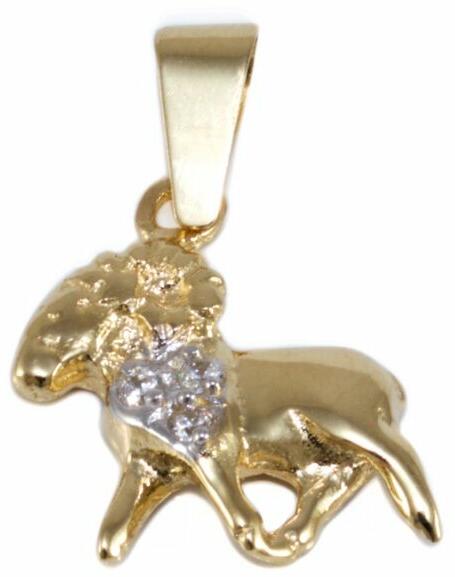 Modern stílusú, kedvelt fazonú, könnyű súlyú, de mutatós, ródiummal és cirkónia kővel ékített "Kos" horoszkópos arany medál.
