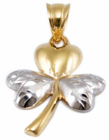 Ródiummal és csillogó véséssel ékített lóherét ábrázoló arany medál.