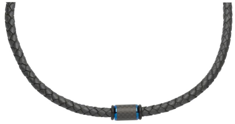Rozsdamentes acél és bőr férfi nyaklánc. Viharkék színű természetes bőr. Különleges karbon betétes dísz. PVD bevonatos biztonsági zár. Exkluzív megjelenés! Cikkszám : K376NV Szín : Viharkék Nyaklánc anyaga : Rozsdamentes acél és bőr Méretválaszték (hossza) : 50cm Bőr vastagsága : 6mm Nikkelmentes : Igen Vízállóság : nem vízálló Garancia : A termékre egy év ga