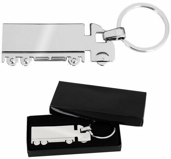Teherautó alakú kulcstartó-medál. Óhajtása szerint bármilyen szöveget, például autórendszámtáblát, sofőr nevét stb... gravírozhatunk.