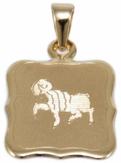 Kedvelt fazonú, mattítással díszített, könnyített kialakítású arany "kos" medál.