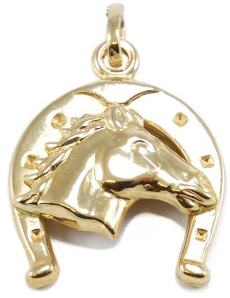 Ajándéknak is közkedvelt választás a patkót ábrázoló, lófej rátétes sárga arany medál.