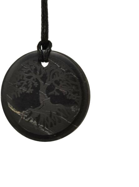 Shungit medál (életfa gravírozott Oroszország Shungit) Egyedi ásvány ékszer.