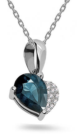 Finom és elegáns medál fehéraranyból, szív motívummal, amely a szerelmet és a gyengédséget szimbolizálja. Ez a női ékszer 14 karátos aranyból készült. A szív motívumot egy gyönyörű, 0,85 ct súlyú természetes topáz emeli ki, amely kék árnyalatával finomságot kölcsönöz a medálnak, valamint kihagyhatatlan hangsúlyt ad. E szépség kiemelése érdekében a medált te