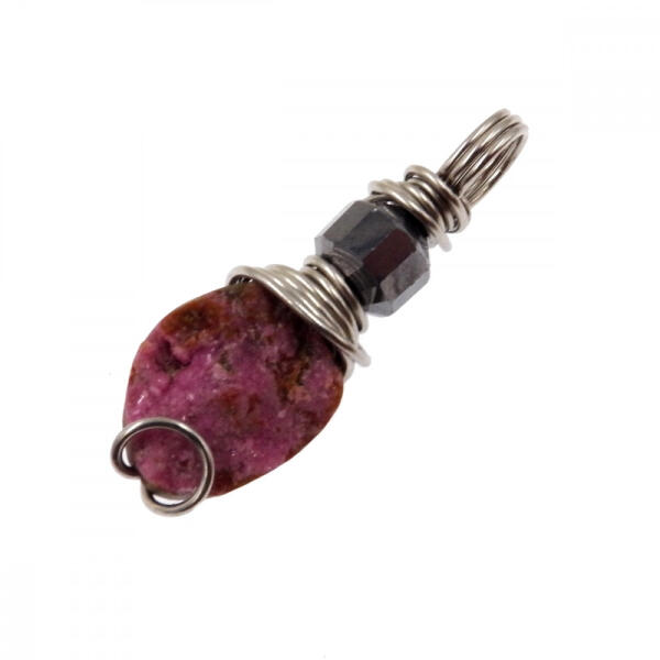 Nagyon ritka, gyönyörű lilás-rózsaszín kobalt kalcitból és terahertz szilicium-dioxid ásványokból készült medál.