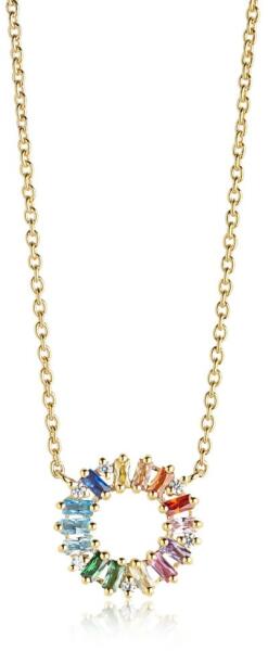 Prémium minőségű ezüst nyaklánc medállal. 18 karátos sárga arany bevonat. AAA kategóriás foglalt színes cirkónia kövek Állítható hosszúságú lánc. Különleges minőségű gyári díszcsomagolás. Ékszer anyaga : Sterling ezüst Finomság : 925 ezrelék Szín : sárga arany Lánchossz : 45+5cm Medál méret : 15mm x 15mm Kövek : AAA minőségű színes cirkónia (foglalva) Cs