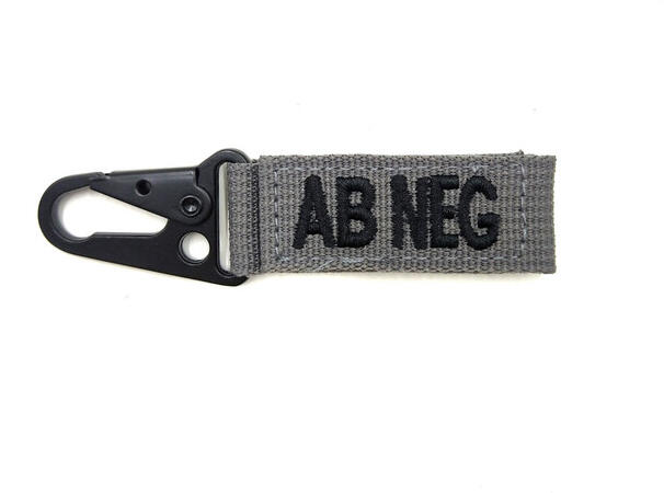 Karabiner vércsoport jelzéssel, amely felakasztható és tartalmaz életmentő információt. Rögzíthető hátizsákra vagy ruházatra, és ideális kulcsokhoz, pénztárcához, övhöz stb. A szalag 100% poliészterből, a karabiner pedig cinkötvözetből készült. Méretei: 11x3,7cm, 22g. A merev kivitelezés és a vércsoport előnyei.