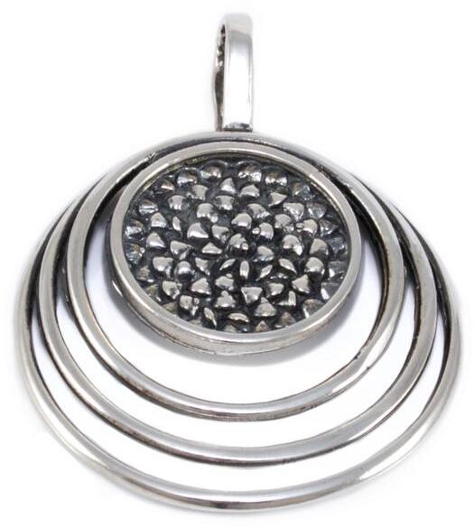 Modern stílusú, antikolással díszített, masszív kialakítású karikákból kombinált ezüst medál.