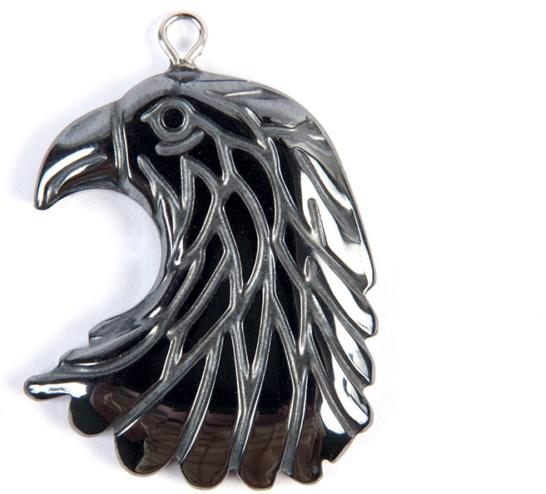 A hematit sasfej medál méretei : magasság 34 mm, szélesség 25 mm, vastagság 5 mm. Láncra vagy bőr nyakláncra felfűzve ajánlott viselni. A hematit egy olcsó ásvány, de színe és fénye miatt látványos ékszer készíthető belőle. Csillagjegy : Kos, Skorpió, Bak, Vízöntő Csakra : gyökércsakra