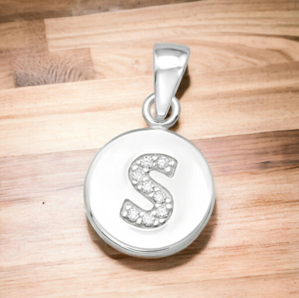 Az S betűs kerek ezüst medál cirkóniával egy elegáns és mutatós ékszer, amely tökéletesen kiegészíti bármilyen outfitet. Az ezüst medál egy kerek alakú fémlemezből áll, melyben csillogó cirkónia kövek helyezkednek el. A kiemelkedően kidolgozott medál középpontjában egy S betű található, mely még inkább személyessé varázsolja a terméket. Ez a kifinomult ékszer