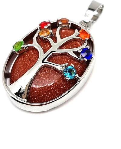 Goldstone vörös fa medál (ovál fém strasszos Kína Ásvány medál) Egyedi ásvány ékszer.