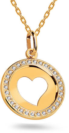 Kerek szívvel metszett medál cirkóniákkal, 14K, modell IZ28999