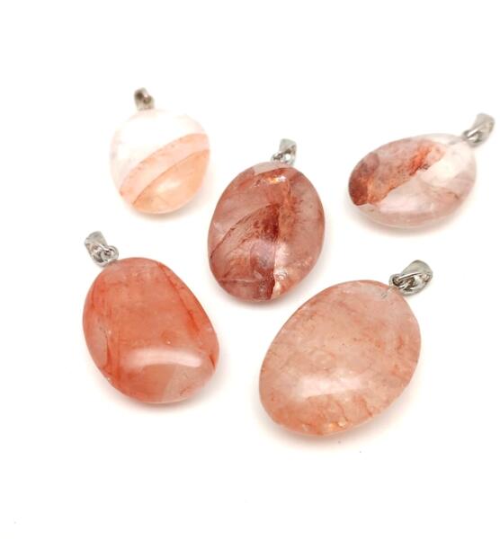 Hematoid kvarc medál (lencse "AA" minőség vörös Madagaszkár Ásvány medál) Egyedi ásvány ékszer.