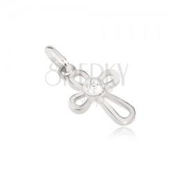 Medál fehér aranyból vékony csomókkal. A fényes sarkak a közepén össze vannak kapcsolva és kidomborodó átlátszó cirkóniával vannak kitöltve. Méretek: 10 x 15 mmA medál súlya: 0,9 gA láncon lévő szem szélessége: 3 mmFémjelzéssel ellátott. Medál lánc nélkül.