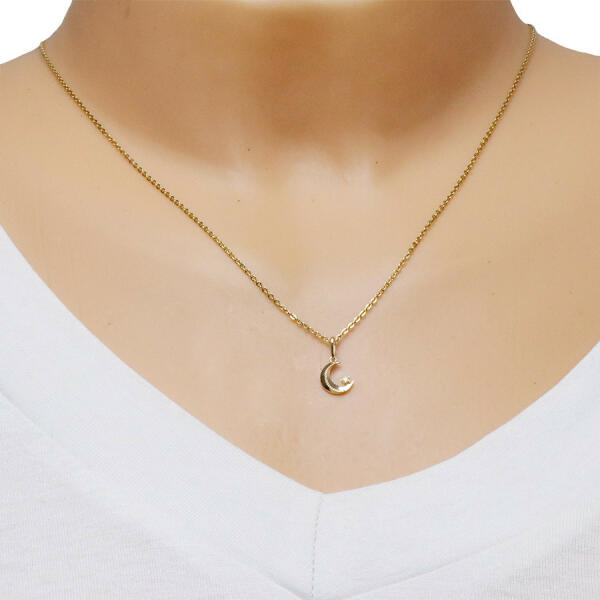 A 9K sárga arany medál egy holdból áll, amelynek a szélei kissé ferdék és egy bordázott vonal díszíti. Az alsó részén egy átlátszó kerek cikrónia található, amely egy apró csillag alakú foglalatba van ágyazva. A medálhoz tartozó láncra kerülő szem felfelé szélesedik. A medál mérete: 7 x 10 mmA láncra kerülő szem szélessége: 1,5 mmA medál súlya: 0,22 gFémjelz