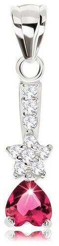 Medál 925 ezüstből apró szimmetrikus fordított szív alakban rózsaszín cirkóniából és ötágú csillaggal átlátszó cirkóniákkal kirakva, amely felülről van a szívhez erősítve. A csillag felett egy rövid csillogó sáv található, amely a dísz részt kapcsolja össze a láncszemmel. A medál méretei: 4,5 x 15 mmA láncra kerülő szem szélessége: 4 mmA medál súlya: 0,94