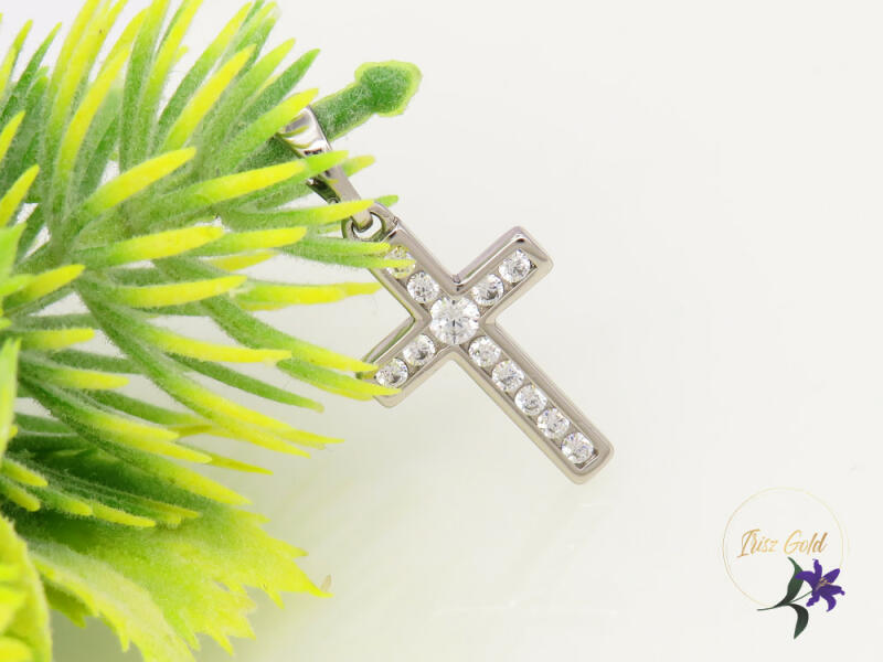 Antiallergén kiskereszt medál cirkóna kövek díszítik Szin: rodium(ezüst) Méret:20x10mm A forgalmazott divatékszerek alapanyaga nikkel és ólommentes ezért többnyire nem okoznak allergiás tüneteket, nyugodtan hordhatják fémérzékeny emberek is. Általában nem színezik a bőrt és más divatékszerekhez képest nagyságrendekkel jobb kopásállósággal rendelkeznek. A fehér (ez