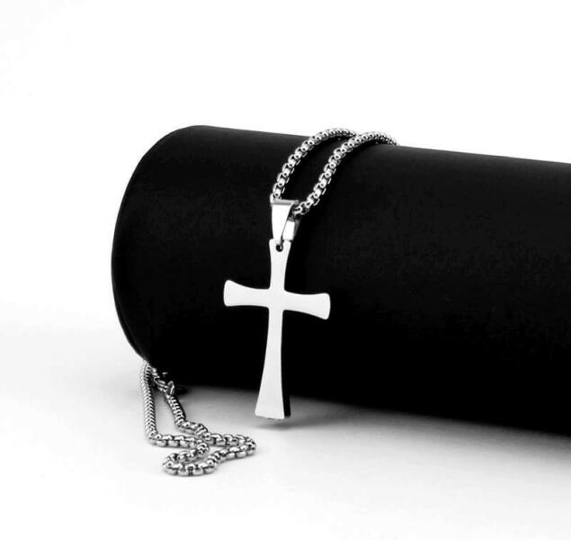 Orvosi acél kereszt medál 36 mm x 25 mm magas minőségen elkészített, polírozott nem feketedik, nem kopik antiallergén, fémérzékenyeknek is