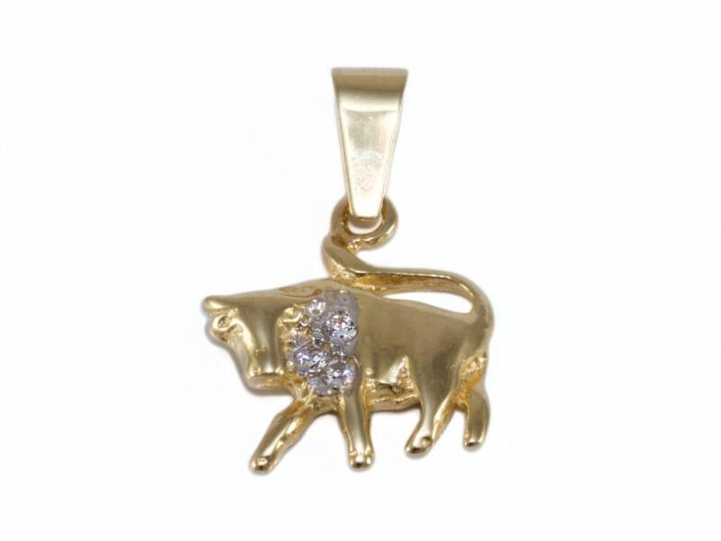 Modern stílusú, kedvelt fazonú, könnyű súlyú, de mutatós, ródiummal és cirkónia kővel ékített "Bika" horoszkópos arany medál.