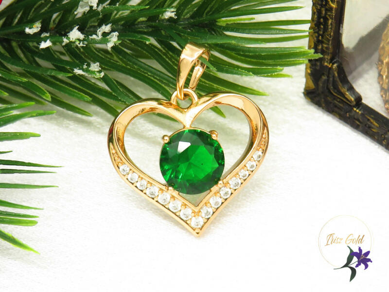 Antiallergén szivalakú medál zöld cirkóna kővel Szin: 18K Méret: 20x25mm A forgalmazott divatékszerek alapanyaga nikkel és ólommentes ezért többnyire nem okoznak allergiás tüneteket, nyugodtan hordhatják fémérzékeny emberek is. Általában nem színezik a bőrt és más divatékszerekhez képest nagyságrendekkel jobb kopásállósággal rendelkeznek. A fehér (ezüst) színű é