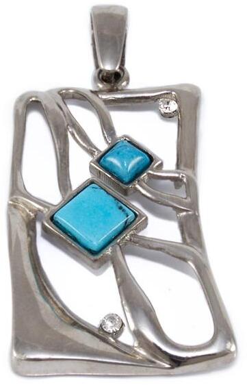 Modern stílusú, mutatós, áttört ezüst medál, benne cirkónia kövekkel és festett howlittal díszítve.
