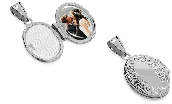 Ovális fotó medál díszmintával, 9K fehérarany, modell IZ17287AHR