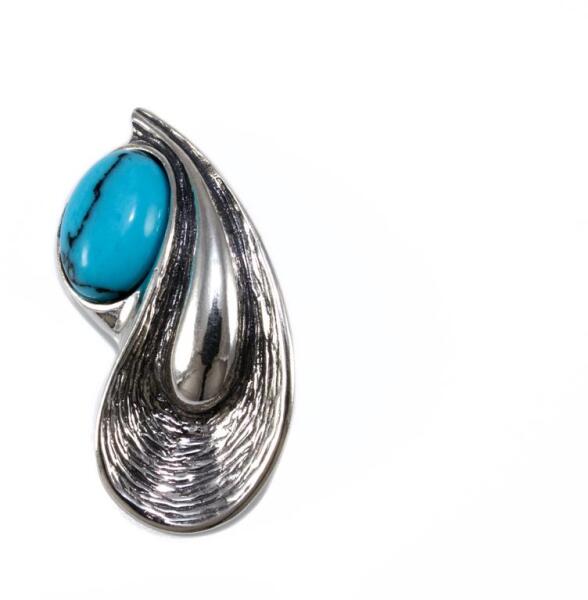 Modern stílusú, ovális festett howlittal ékített ezüst lógós medál.