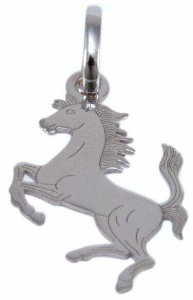 Modern stílusú, könnyű súlya ellenére mutatós, ez a ródiummal bevont, véséssel díszített ágaskodó lovat ábrázoló arany medál.