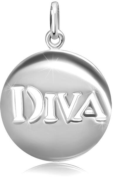 925 ezüstből készült függő - tükrösen fényes körlap. A medál közepét kivágott "DIVA" felirat díszíti. A láncra kerülő szem ovális. Átmérő: 20 mmA láncra kerülő szem szélessége: 2,5 mmA medál lánc nélkül kapható. A függő súlya: 2,6 gFémjelzéssel ellátott.