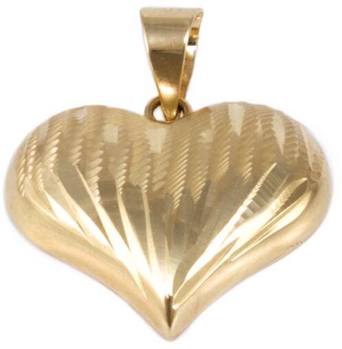 Méreténél fogva igen mutatós, ez a csillogó véséssel és mattítással díszített, hátilról könnyített kialakítású, nagyobb méretű arany szív medál.