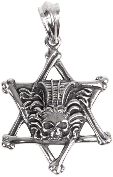 Hatágú csillag formába csoportosított csontok - ez az igazi mindenkinek, aki az okkultizmus híve! A W-TEC Okultis tehát nagyszerű divatkiegészítő metalistáknak, motorosoknak és a mágiák kedvelőinek. A rozsdamentes acél csiszolt felülete kontrasztot alkot a patinával, és így stílusos díszítést alakít ki a medál teljes felületén. Közepén koponyával ráadásul biztosan